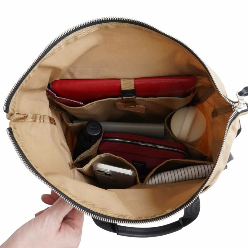 ישנם כיסים משני צידי התא הראשי שיכולים להכיל דברים כמו בקבוקי פלסטיק ומטריות מתקפלות.
